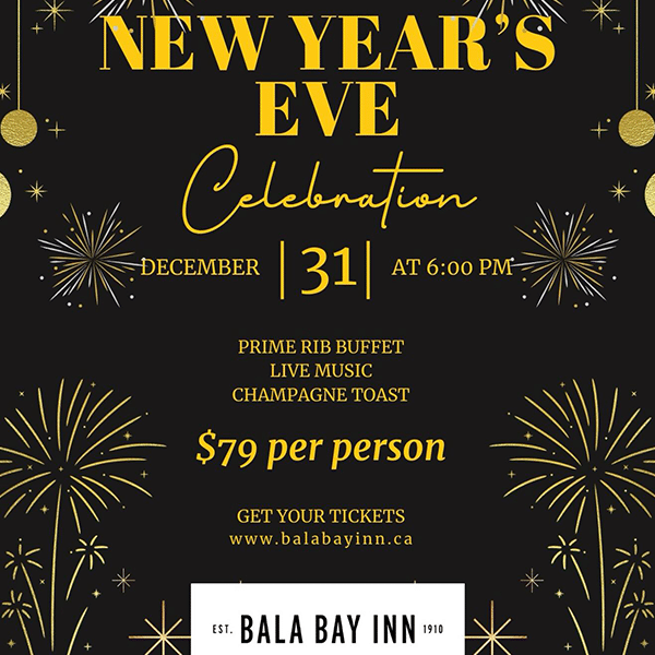 Celebrate New Year's at The Bala Bay Inn with a night of music, good food, and great company! Ticket includes: Live music, prime rib buffet dinner (@7pm), and a champagne toast! Don't…
