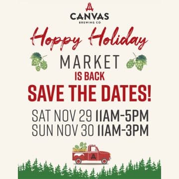 Sip, Shop and Support Local at Canvas Brewing’s annual Hoppy Holiday Market happening November 29th from 11am-5pm and November 30th from 11am-3pm. With over 40 vendors there’s definitely something for everyone on your list! Enjoy a gourmet hot chocolate, beer or handcrafted cocktail while you shop.