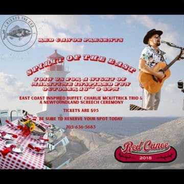 Red Canoe presents Spirit of the East on October 16th at 6pm. Join in for a night of maritime inspired fun with an East Coast inspired buffet, live music from the Charlie McKittrick Trio and a Newfoundland Screech Ceremony. Tickets are $95 and must be reserved in advance.