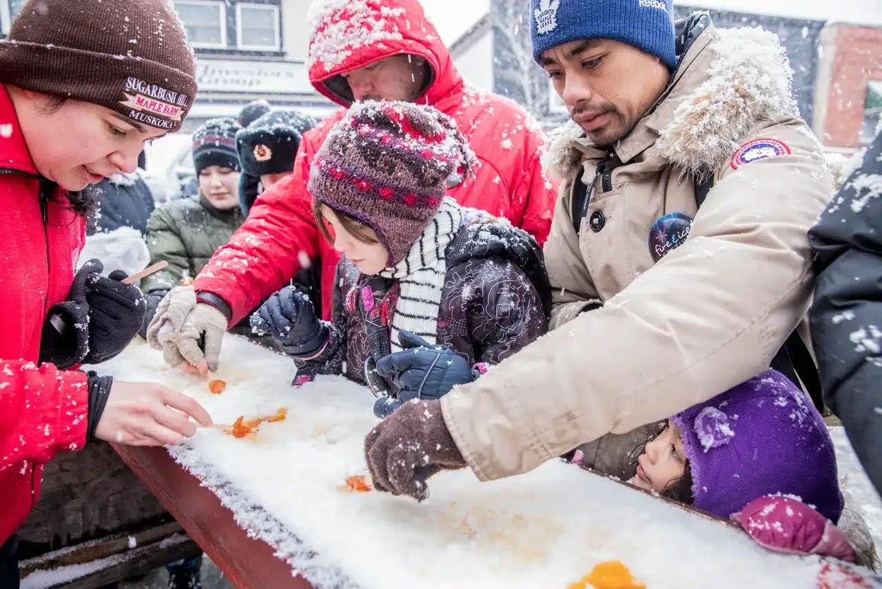 The highlight of the event is the town’s main street which is transformed overnight by a dedicated group of volunteers, and 75 truckloads of snow, into the now-famous tube hill run down to the centre of Bracebridge. Glide past onlookers, shops and restaurants to all the action below – an unforgettable experience (and make sure someone has a camera ready to capture the action).