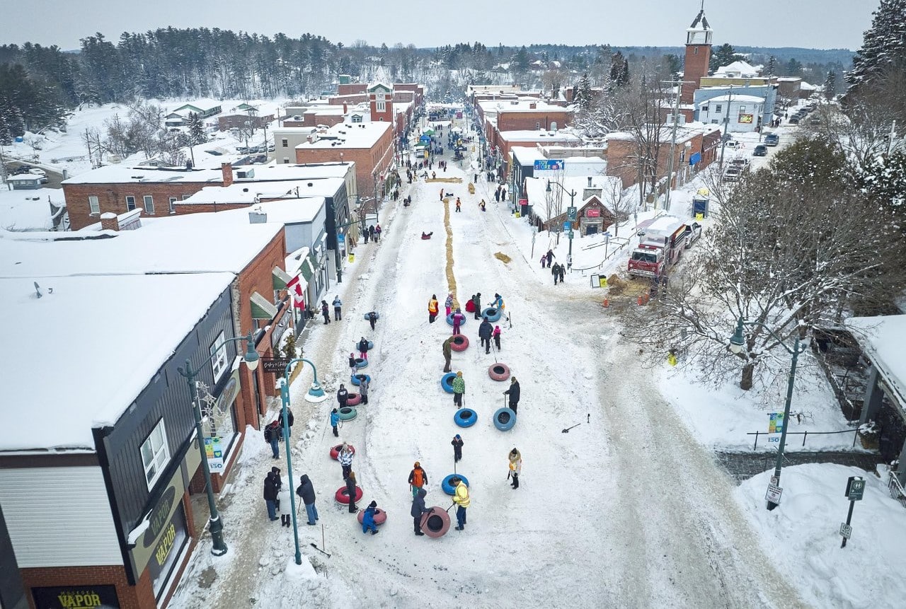 The highlight of the event is the town’s main street which is transformed overnight by a dedicated group of volunteers, and 75 truckloads of snow, into the now-famous tube hill run down to the centre of Bracebridge. Glide past onlookers, shops and restaurants to all the action below – an unforgettable experience (and make sure someone has a camera ready to capture the action).